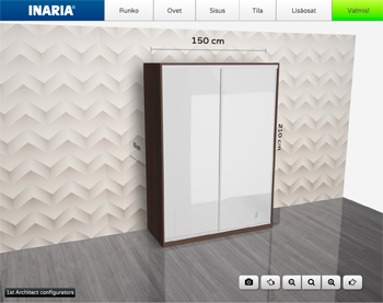 Ohjelmillamme voit helposti suunnitella ja visualisoida tarpeesi sekä jättää yhteydenottopyynnön.Liukuovikaapistot »![]() | |